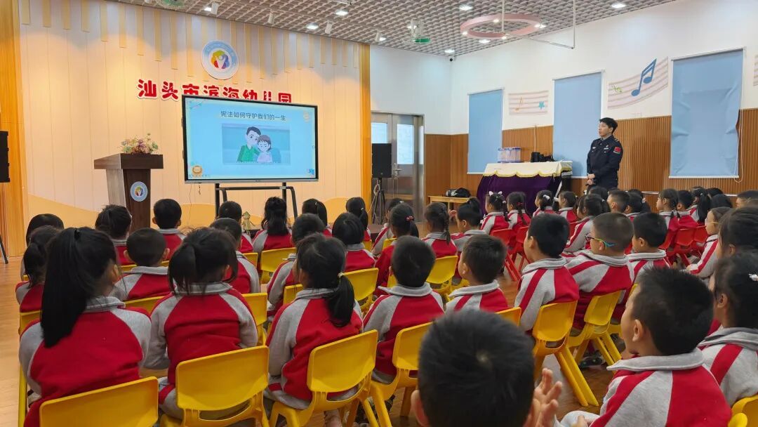 而11月26日在滨海幼儿园(长兴苑园区)开展的活动中,特设“宪法普及知识”环节。彼时临近12月4日国家宪法日,张警官以此为契机,将宪法知识融入幼儿课堂。张警官紧扣宪法根本大法、至高无上、全民遵循的核心特点,以孩子们熟悉的“国家”“家园”概念为切入点,通过生动通俗的语言、趣味互动问答,搭配画面温馨的简单动画短片,将抽象的宪法精神转化为可感知的生活道理,向孩子们传递“宪法保护每个人自由的权利”这一核心认知。这场活动让孩子们初步了解到宪法是国家的“根本规则”,懂得个人权利受法律保护、行为需遵守公共秩序,对法律更加敬畏与认同。