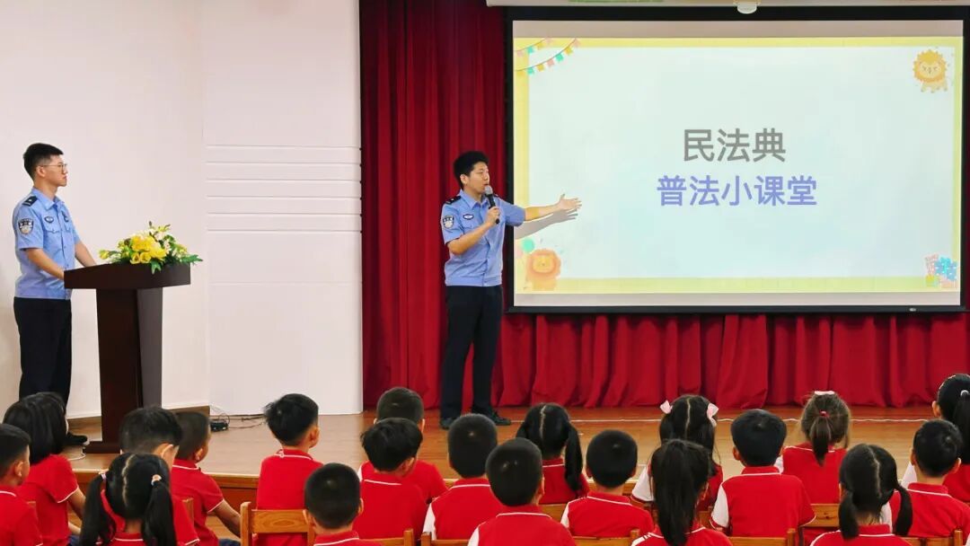 在6月18日中山幼儿园开展的活动中,在民法典普法小课堂上,张警官立足民法典贴近生活、通俗易懂、保障权益的核心特点,巧妙结合幼儿日常起居、同伴交往、校园生活等熟悉场景,用童趣化的语言将抽象法律知识“活”了起来。对于低龄幼儿而言,这样的普法形式不仅帮助他们初步建立“规则意识”与“权利观念”,更让他们学会了如何保护自己、尊重他人。