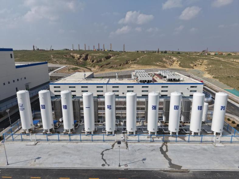 “国铀一号”示范工程是我国产能规模最大、建设标准最高的天然铀产能基地,具有绿色、经济、智能、高效的特点。该项目于2024年7月12日开工建设,一年时间即生产出产品,创国内天然铀产能项目建设新速度。